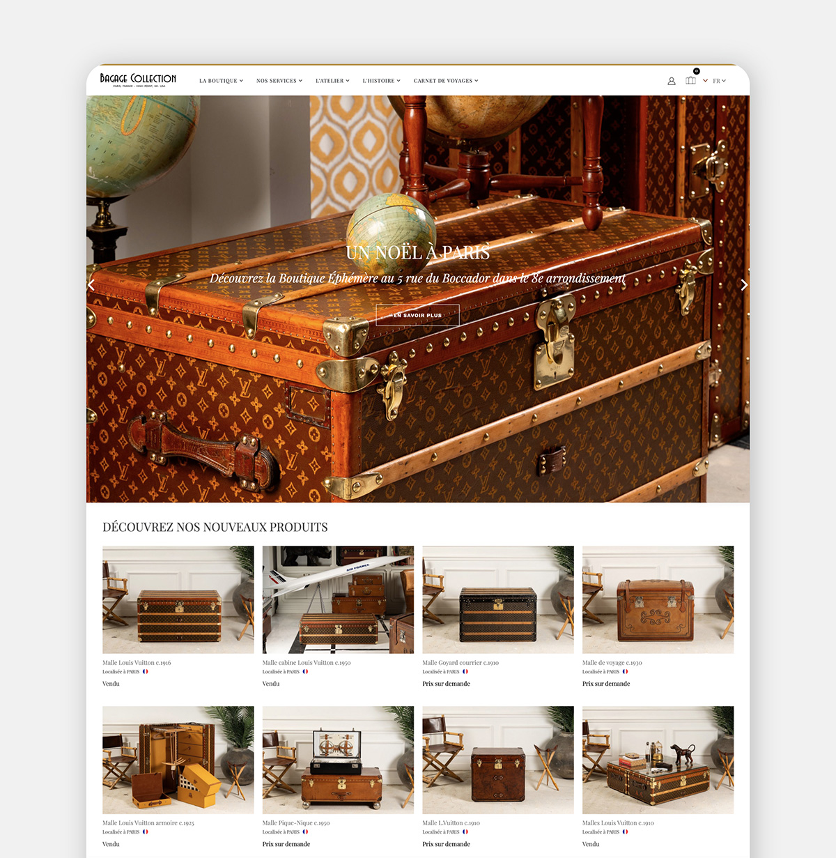 L'objectif était de mettre en valeur des produits (malles et articles de voyage anciens) avec une présentation visuelle claire et adaptée à l’univers du vintage/luxe.