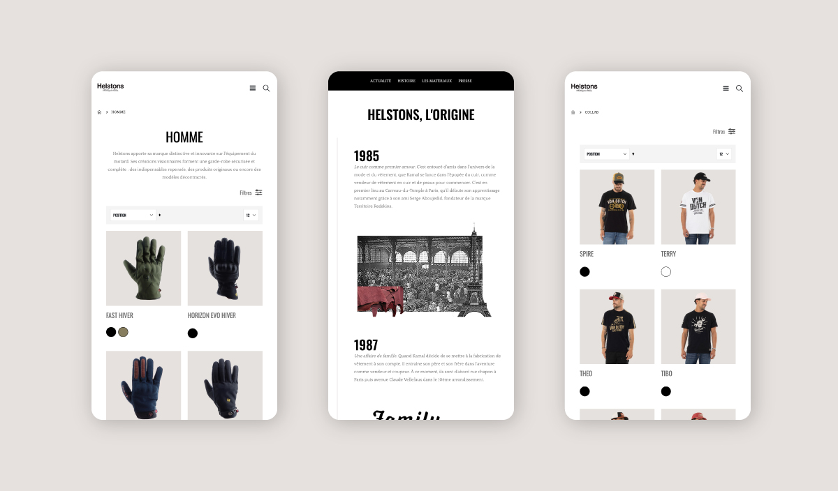 Helstons est une célèbre marque de vêtements et d'accessoires moto. Dans le cadre de notre mission, l'objectif était de présenter aux professionnels le catalogue complet avec toutes les options possibles des produits.
