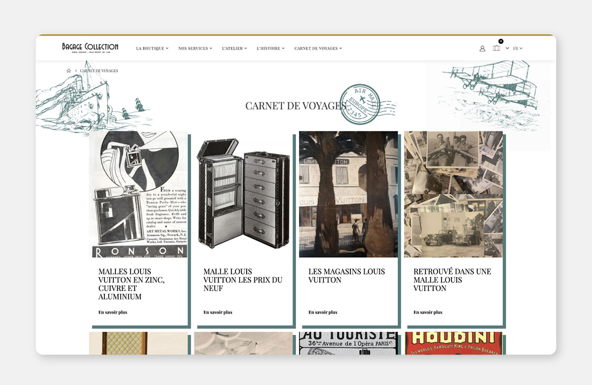 L'objectif était de mettre en valeur des produits (malles et articles de voyage anciens) avec une présentation visuelle claire et adaptée à l’univers du vintage/luxe.